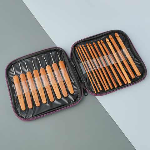 Enkel Hoofd Bamboe Handvat Rvs Haak Breigereedschap Verkoold Naainaalden Set Pu Verpakking Voor Handnaaien
